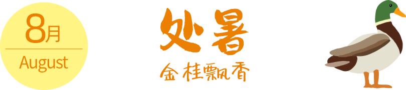 公历每年的八月二十三日或二十四日为处暑。“处”为终止的意思,表示炎热的暑天已过去,天气将变得凉爽了。此时正值秋收之际,降水十分宝贵。