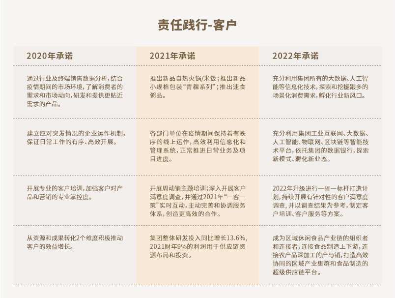 米老头坚信,商业成果最大的意义是“为客户创造价值”,围绕行业风口、客户需求提供具有质量竞争优势的产品和服务,满足客户的期望,掌握休闲食品的自主知识产权,面对市场新风口和机遇时,甚至能超越客户的期望。创新、责任、实力、效率,赋予了米老头不断迭代和积淀的竞争力,我们有足够的信心和坚定为客户创造无限可能
